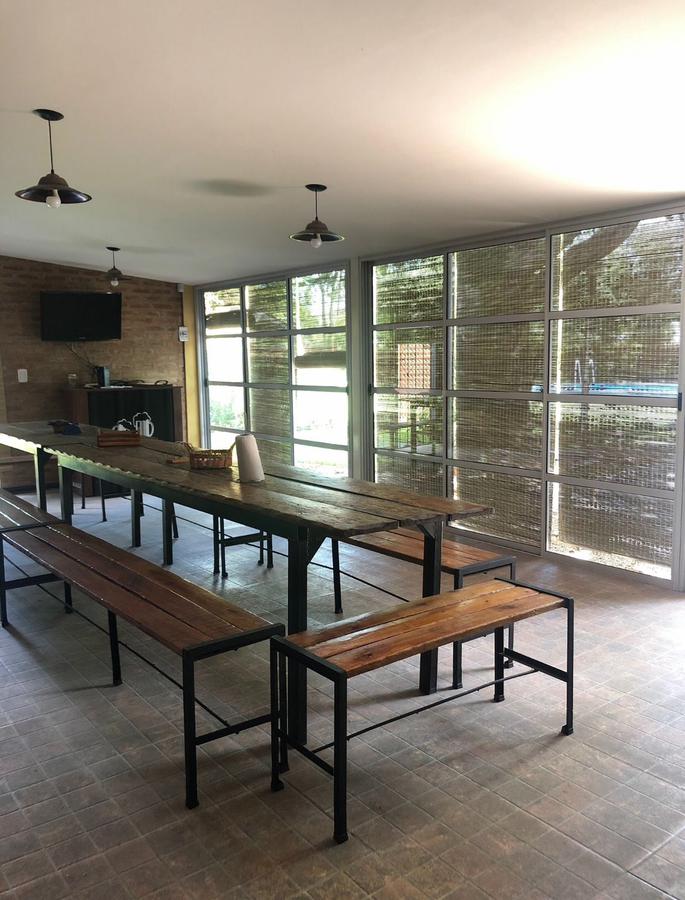 Además, la propiedad cuenta con un quincho totalmente equipado, donde se encuentra una parrilla y una cocina, junto con un baño completo que incluye un vestuario con 3 duchas. En el exterior, se encuentra una amplia piscina de 5 metros x 11.5 metros y un depósito para almacenamiento adicional.